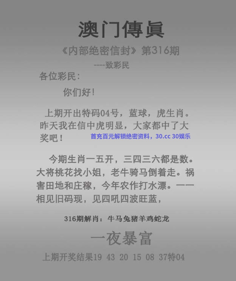 316期:独解傳眞 解:今期生肖一五开,三四三六都是数。大将桃花找小姐,老牛骑马倒着走。祸害田地和庄稼,今年农作打水漂。一一相见旧码现,见四吼四波旺蓝。 送:牛马兔猪羊鸡蛇龙 主特:17.24.03.07.11.09.13.38 抓住一句解必中特 |